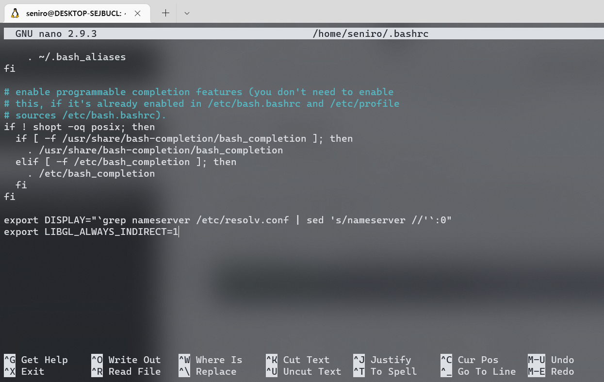 export DISPLAY="`grep nameserver /etc/resolv.conf | sed 's/nameserver //'`:0" export LIBGL_ALWAYS_INDIRECT=1