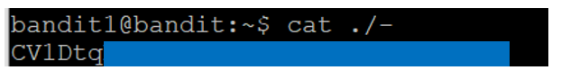 ls -l 명령어로 보면 bandit1 계정에 읽기 권한이 있는 - 파일이 하나 있음을 알 수 있다.